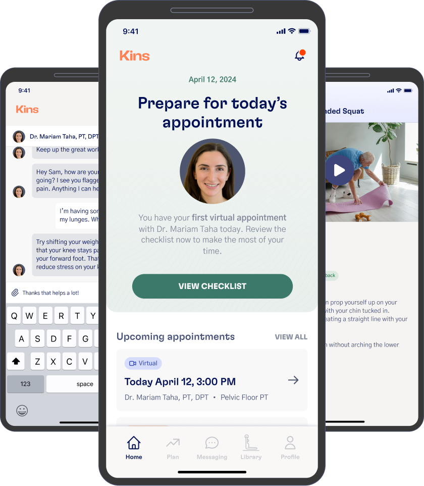 We’re not about rushed visits or awkward clinics. Kins is expert pelvic rehab with real human support — designed to fit recovery at home. It’s easier to start, easier to stick with, and built around your goals.